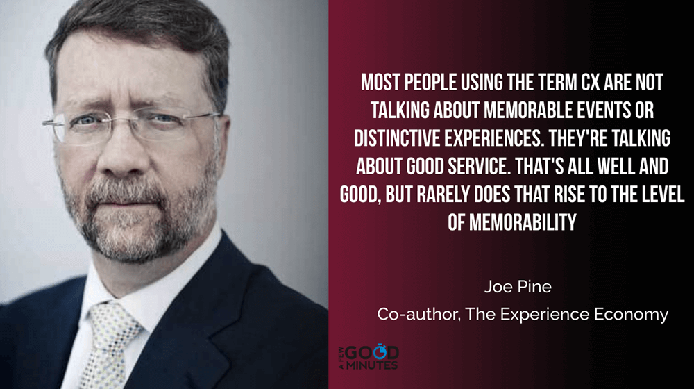 Joe Pine: Most people, when they use the term CX or customer experience, they are not talking about memorable events. They’re not talking about distinctive experiences in this context. They’re actually just talking about good service. That’s all CX gets you, good service. All the technology you’re talking about gets you good service.